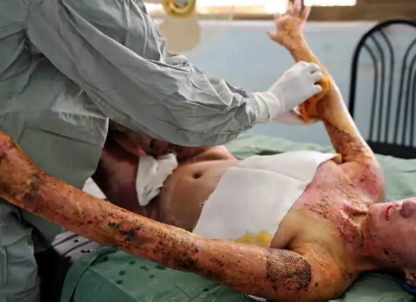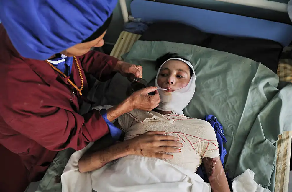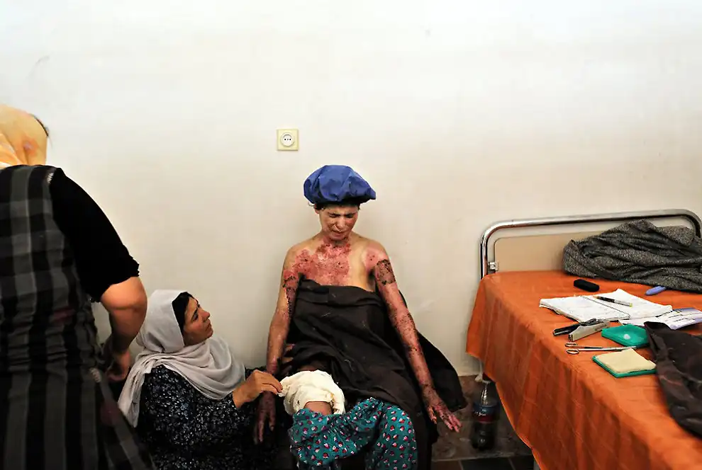 7. Фарзана морщится от боли во время перевязки. В тот день униженная и подавленная она вышла во двор. Отдала мужу их девятимесячную дочь, чтобы ребенок не видел, как горит ее мать. А потом она облила себя керосином.
