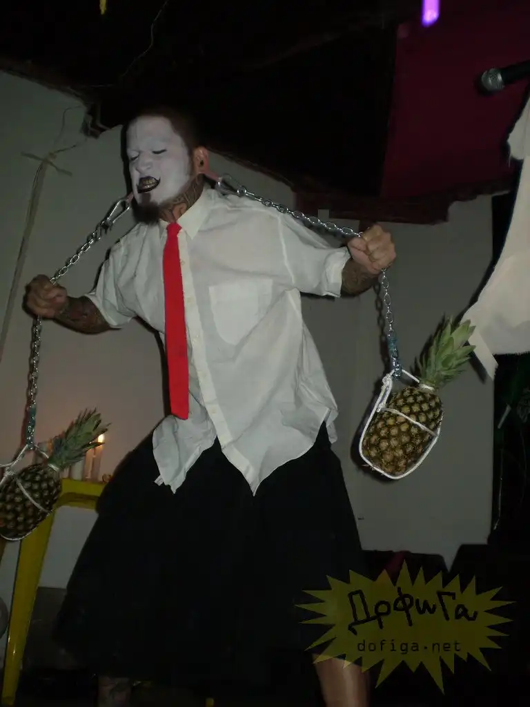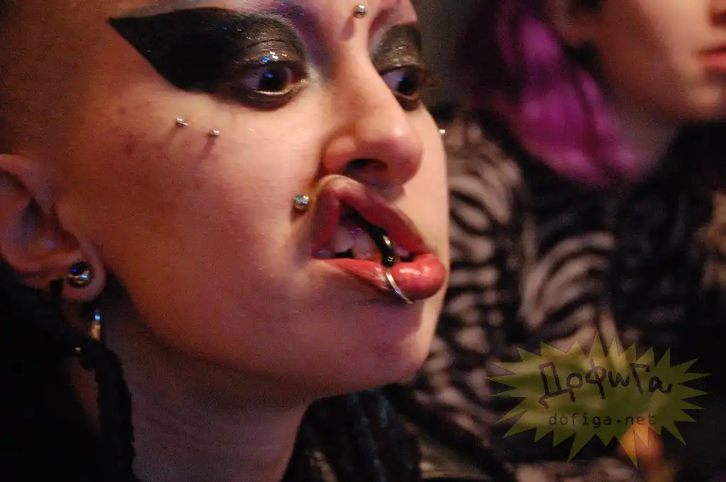 евушка Гнузия . Она помошница фокусника , а во рту пирсинг , специально перекашивающий рот . Верхняя иголка собирает губу.