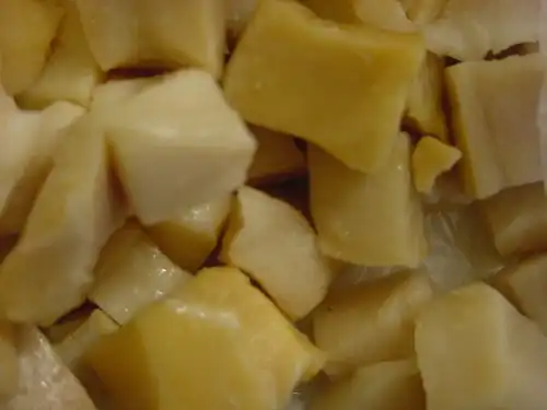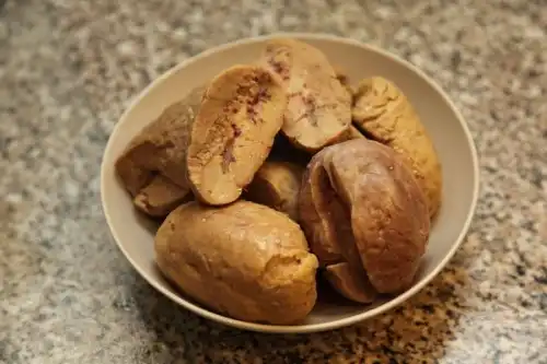 «Устрицы» тщательно помыть и варить 30-45 минут до размягчения, затем, слив воду, хорошо отжать. После этого подрумянить их на сковороде вместе с луком и чесноком, а затем опустить в разведенный в воде крахмал. Добавить вино и варить на медленном огне до загустения соуса. Добавить приправы и подавать горячими. Блюдо рассчитано на 4 порции.
