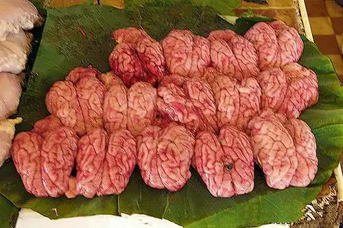 Это не только туристический миф или сцена из «Индианы Джонса»: есть люди, которые регулярно питаются сырыми обезьяньими мозгами. В Камбодже на базаре можно запросто, а главное дешево прикупить несколько килограмм обезьяньих мозгов и тут же, на месте, скушать. Никто не сочтет это странным или безобразным занятием.