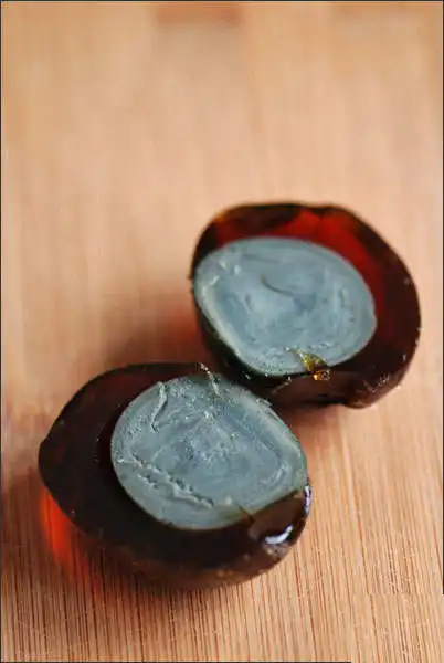 Готовят это необычное блюдо следующим образом: сначала обычное яйцо, куриное или утиное, помещается в смесь глины, соли, лайма и золы. Затем яйцо помещают в рисовую солому и оставляются в корзинах на несколько месяцев. За это время яйцо пропитывается указанной смесью и становится очень темными внутри.