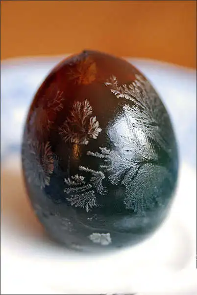 На белке, ставшем почти черным, просматриваются узоры, похожие на переплетенные ветви сосен. Этим и обусловлено название яиц «сунхуа», что означает буквально «цветы сосны».