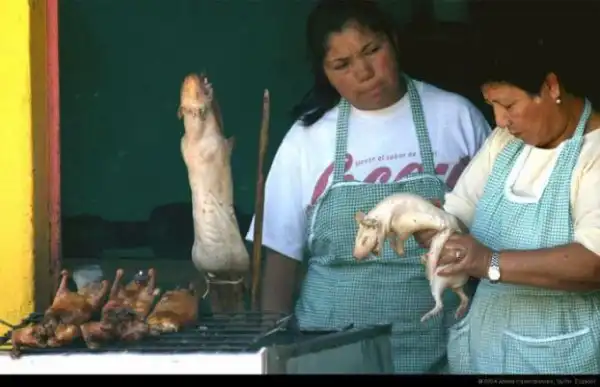 Куй – национальная эквадорская еда. Раньше на Эквадоре мясо крысы ели преимущественно в маленьких деревнях, но теперь эта мода распространилась по всей стране. Правда крыс теперь зачастую заменяют морскими свинками. Этих милых созданий специально выращивают, откармливают, а потом жарят целиком с головой и лапками. Маленьких особей проглатывают целиком, запивая молоком. Подкопченное мясо, говорят, похоже на утиное.