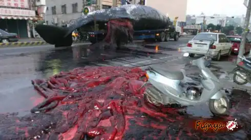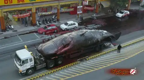 Китайцы перевозили труп огромного кита, то ли на жратву или еще на что либо и как вдруг по середине улицы кит взорвался.
