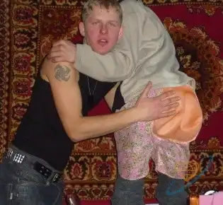 На фото: Мальчег хороший, умеет грамотно выбрать фон. Его подружка немного сдулась – очевидно где-то дырка