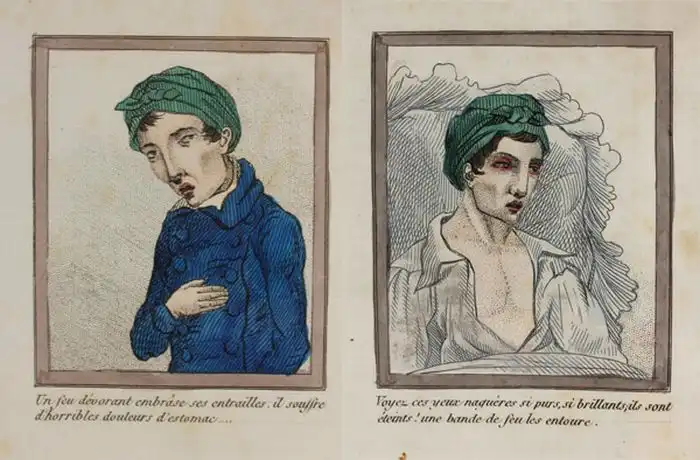 огонь пожирает его изнутри, он страдает от ужасных болей в желудке, его, когда-то ясные глаза, гаснут