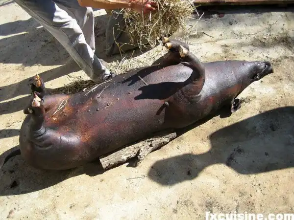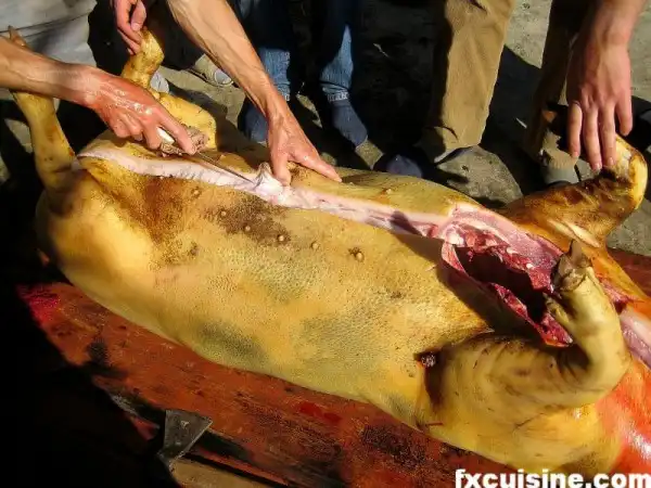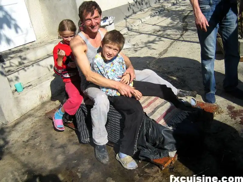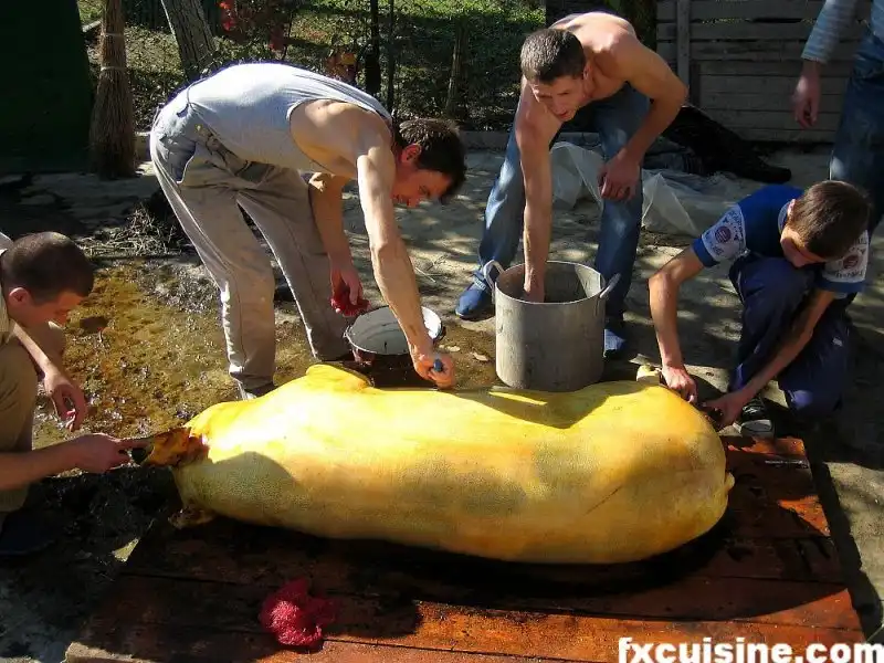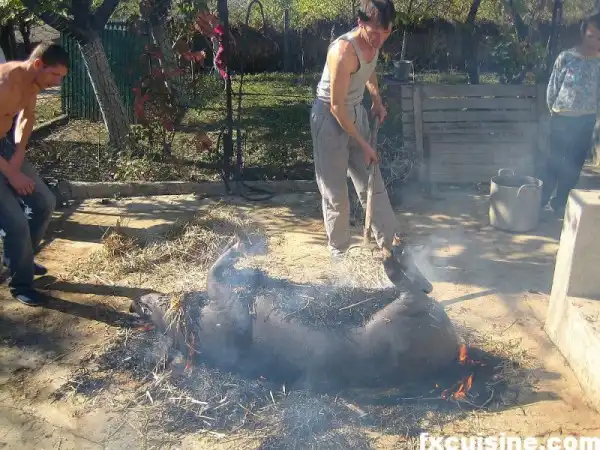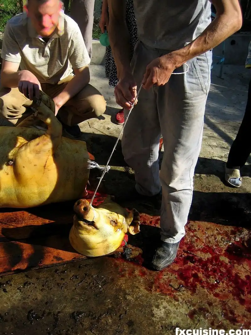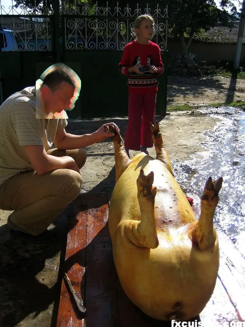 Процесс забоя свиньи в Молдавии по технологии 100-летней давности.