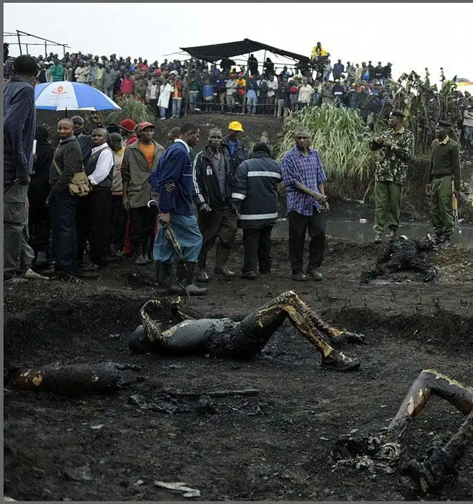 Кенийские бедняки собирали разлитую нефть, когда на нефтепроводе прогремел взрыв.