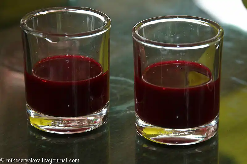 Вот момент перед употреблением крови вместе с виски. Не знаю чувствуется ли что-то, когда пьётся кровь в чистом виде, но в случае смеси с алкоголем, я чувствовал в основном вискарь.