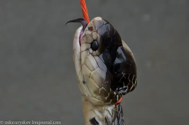 Для начала выбирается сиамская кобра, которая будет тобой впоследствии употреблена в пищу.