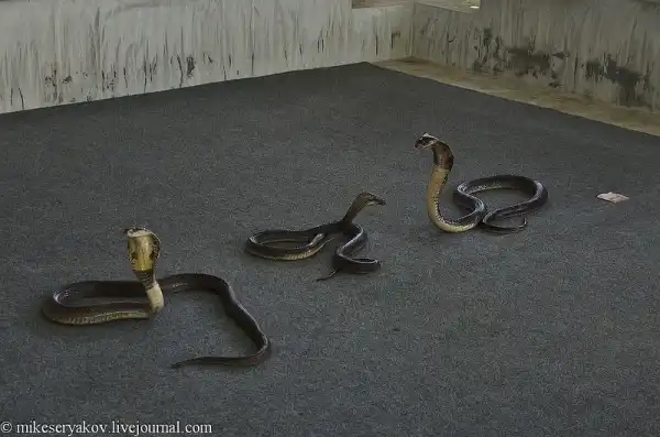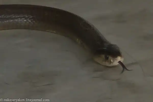 Её выпускают из клетки и она ползает какое-то время прямо перед твоими ногами и появляются мысли, что кобре нужна всего лишь секунда, чтобы преодолеть метр до тебя и нанести свой смертоносный укус, но как известно змеи не нападают первыми.