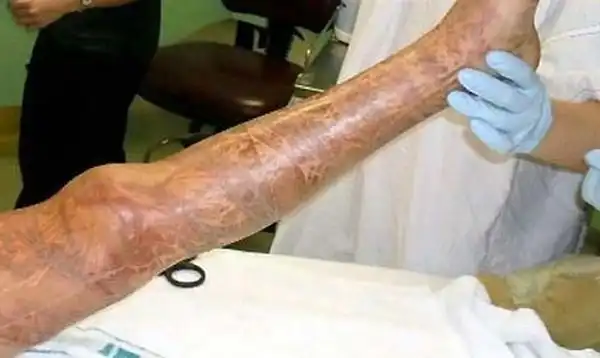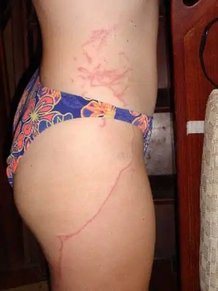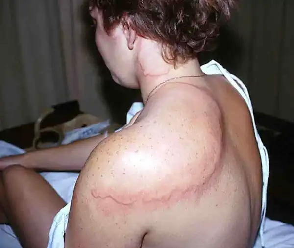 Эти ужасные ожоги были оставлены медузами Chironex fleckeri из класса кубомедуз. Яд в их щупальцах очень токсичный и оставляет сильнейшие ожоги, а в некоторых случаях может привести к смерти.