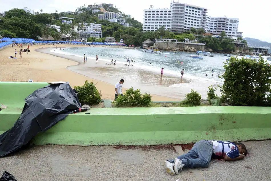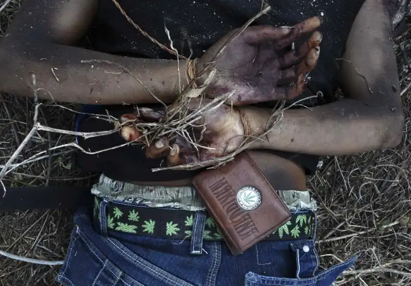 Труп мужчины с руками, связанными за спиной, курортный город Акапулько, Мексика. . (AP Photo/Bernandino Hernandez, File)
