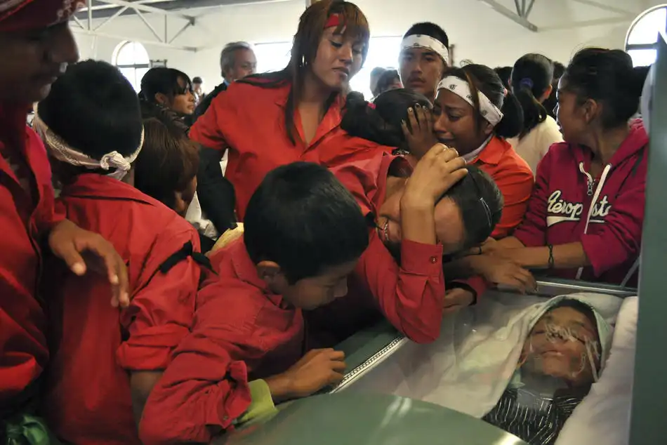 Друзья и родственники Рейеса Рикардо рядом с его телом. Рикардо был одним из 14 убитых в перестрелке в Сьюдад Хуарес, Мексика.