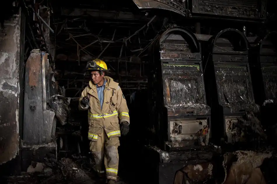 Пожарный ищет тела внутри сгоревшего казино в Монтеррее, Мексика, 26 августа 2011 года. Бойцы одного из наркокартелей подожгли казино, в результате пожара погибло 52 человека. Президент Кальдерон назвал это преступление "чудовищным и варварским".