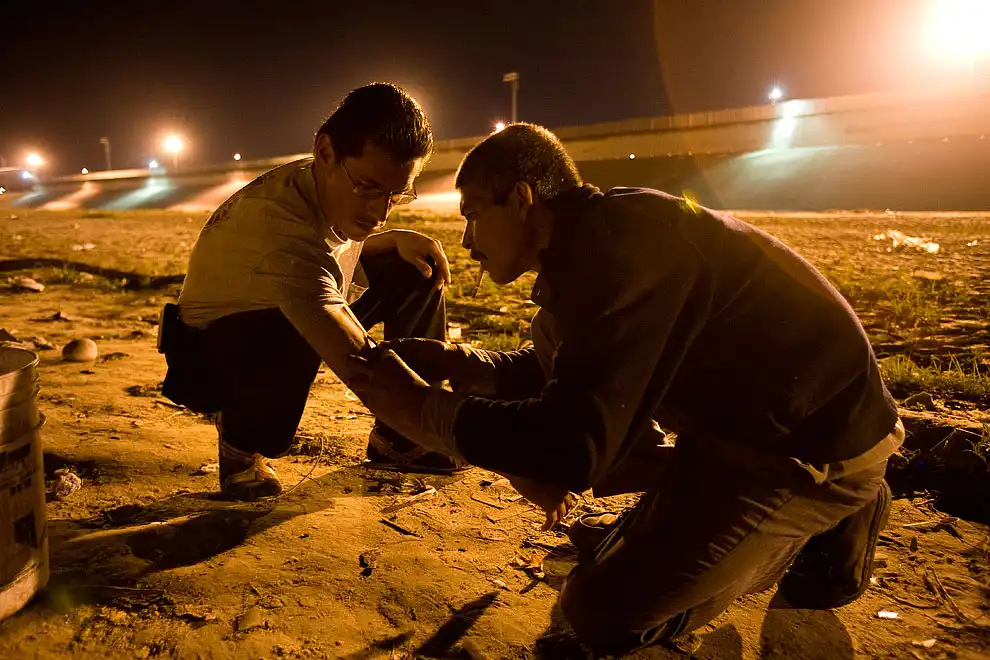 Наркоманы колются героином рядом с границей между Мексикой и США, где можно легко и недорого купить наркотики.