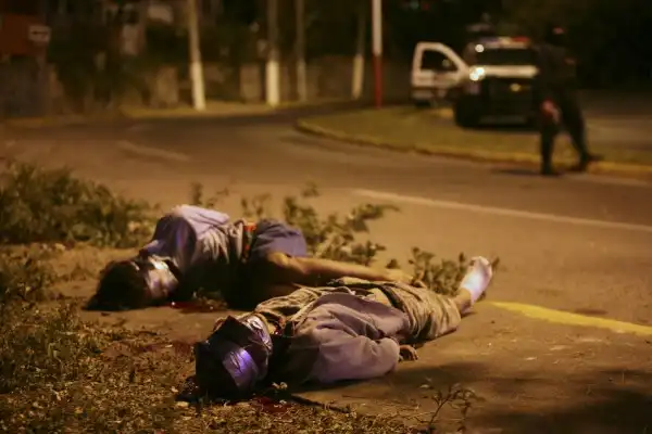 Тела двоих мужчин, застреленных возле пляжа Калета в Акапулько, 16 августа 2011 года.