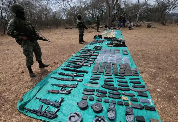 Мексиканские солдаты у арсенала в городе Сюитлхауак 14 марта. Солдаты нашли арсенал оружия и тренировочный лагерь в штате Веракруз. На территории лагеря были вырыты траншеи, и находился нал из 12 344 патронов разного калибра, 191 магазина, 28 гранат, более десятка автоматов, включая АК-47.