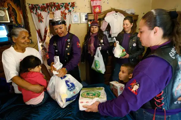 «Воительницы» оказывают гуманитарную помощь жителям бедного района Сьюдад-Хуареса 23 января. Эти женщины на розовых мотоциклах раздают продукты питания и лекарства бедным одного из самых опасных городов в мире. Это их знак протеста против насилия. Бросая вызов наркокартелям, женщины выезжают каждое воскресенье в бедные районы города на границе с Эль-Пасо, штат Техас.