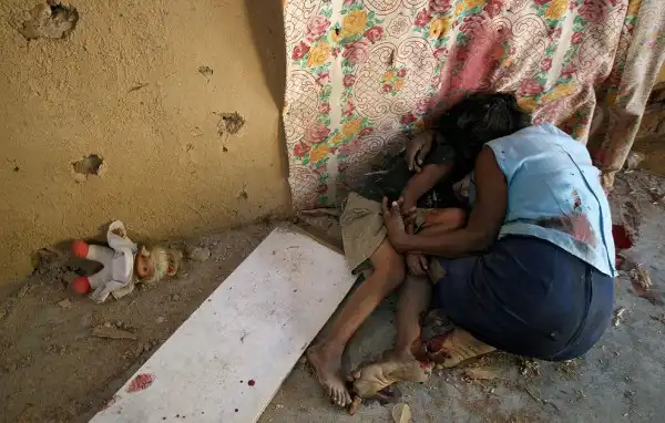 Трупы женщины и ее внучки на полу в доме в Акапулько. В результате жестокого преступления вторая внучка женщины также погибла.