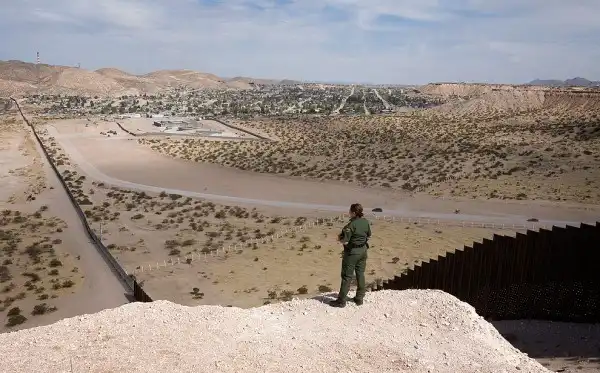 Карла Джонсон на границе Мексики и США недалеко от Эль-Пасо и Хуареса.
