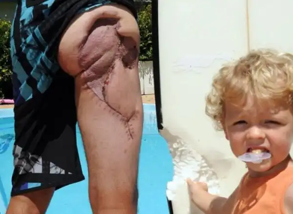 У серфера из Австралии остался только ужасный шрам который напоминает ему о тех ужасных событиях.