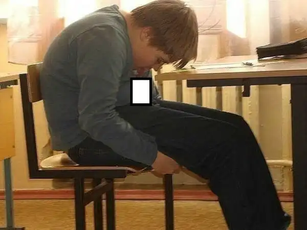 ШКОЛЬНИК! Будь бдителен! Никогда не пытайся заниматься аутофелляцией на уроке!