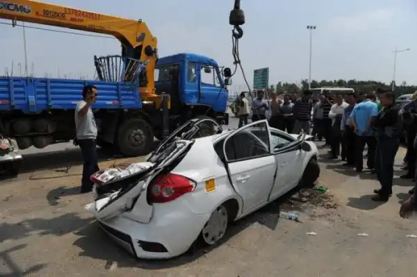 12 тонн железа рухнули на легкой автомобиль, в котором находилась семейная пара с двухлетним ребенком.