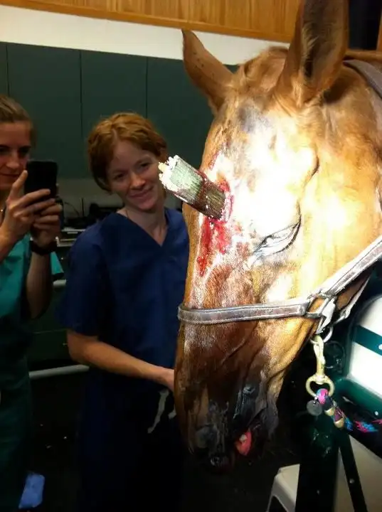 Где-то в глубине души каждая лошадь мечтает стать единорогом, и этой старой цирковой кобыле это ненадолго удалось. 30-летнюю лошадь нашли в конюшне с 22-сантиметровым куском дерева в голове. Что произошло, и как лошадка получила ранение, непонятно. К счастью, деревяшка не задела мозг, поэтому животное сейчас выздоравливает.