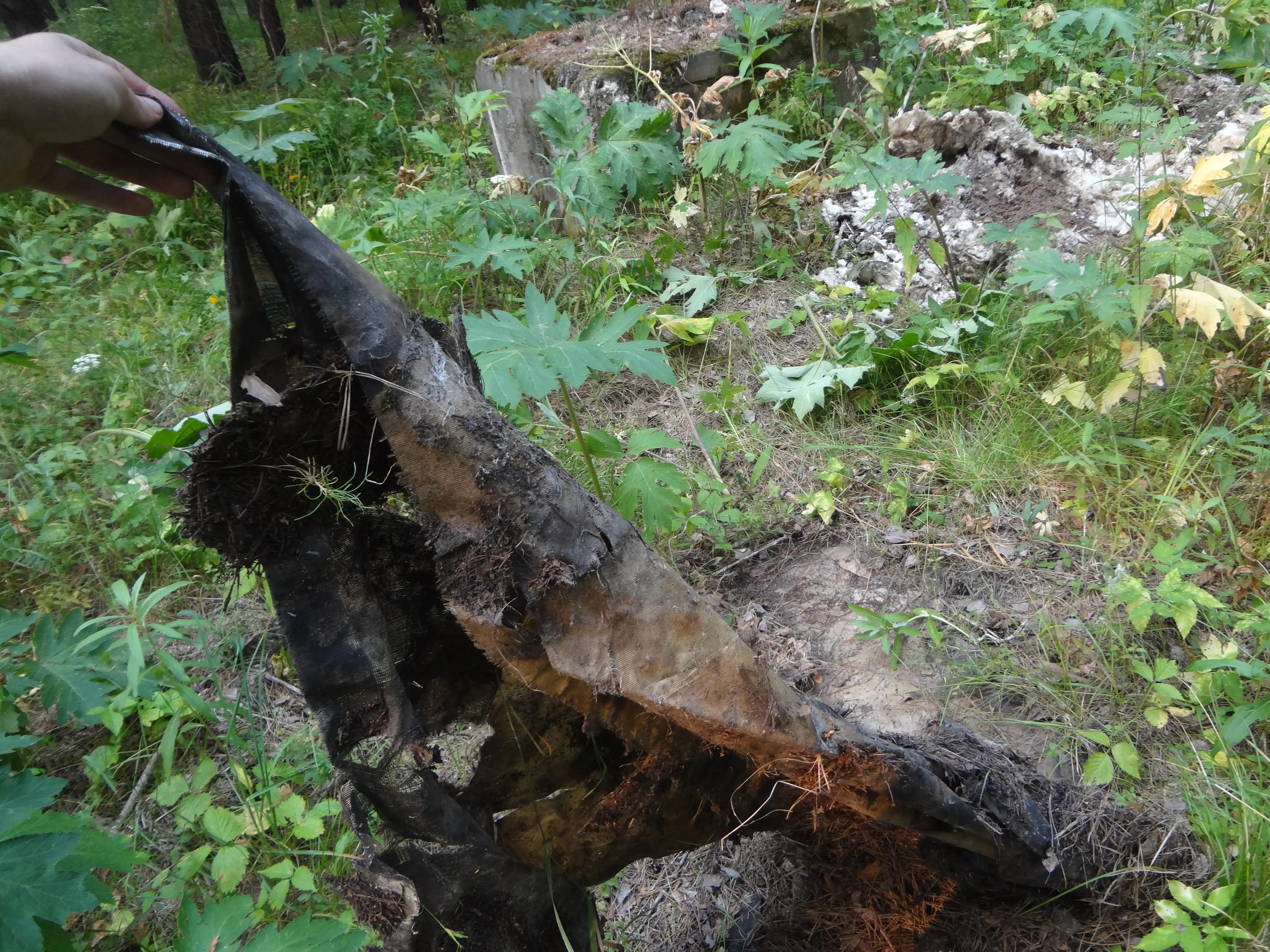 видите это серые засохшие листочки,это уже старые,по видимому этот защитный материал не даёт разлагатся в нём или на нём растениям