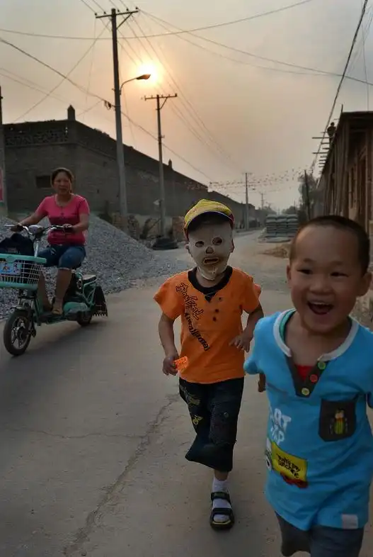 29 мая 2012 года, Фыньян, Китай. - Мама помогает Сян Сяну надеть маску.