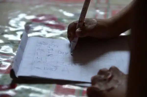 29 мая 2012 года, Фыньян, Китай. - Сян Сян дома учится писать.