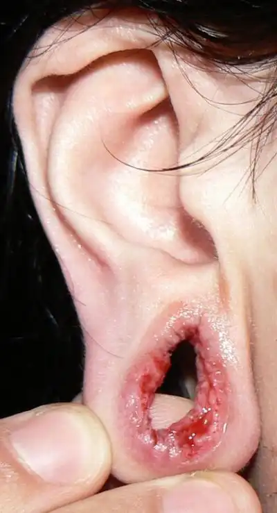 Я никогда не понимал людей, которые уродуют свое тело в процессе погони за красотой или модными молодежными тенденциями. Как вы думаете, во что превратятся уши парня, которому надоело ходить с тоннелями в ушах, и он решил от них избавиться навсегда.
