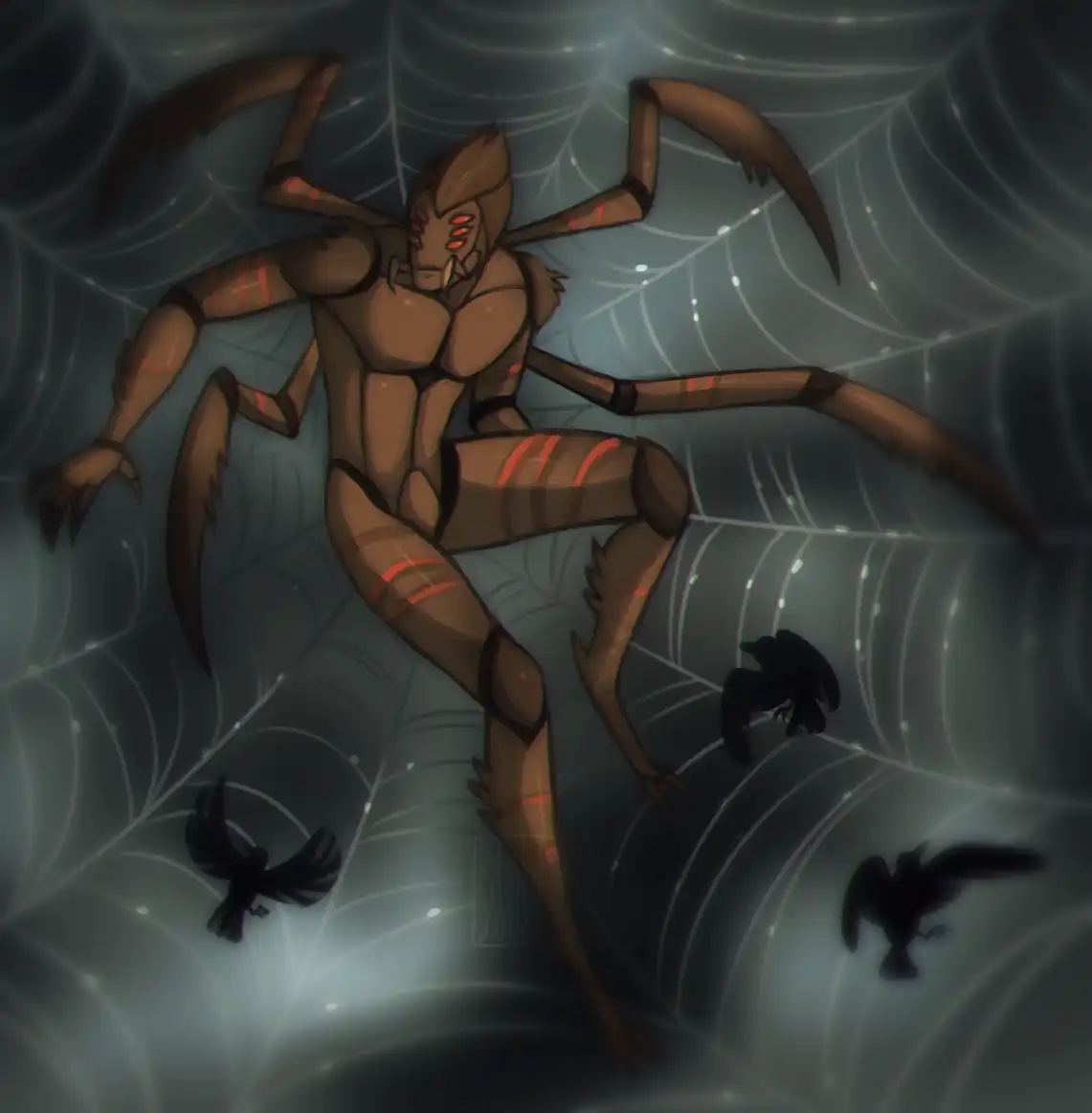 заходит в его логово и видт что там паутина