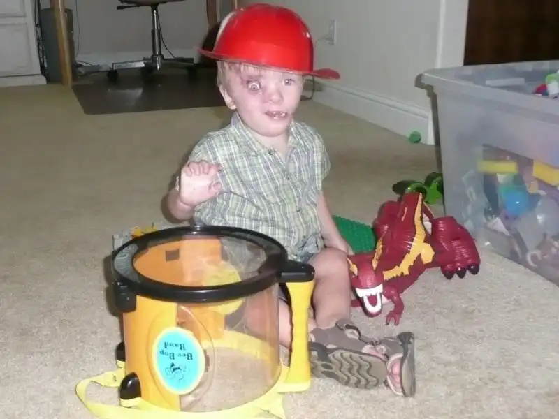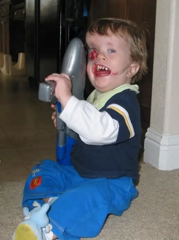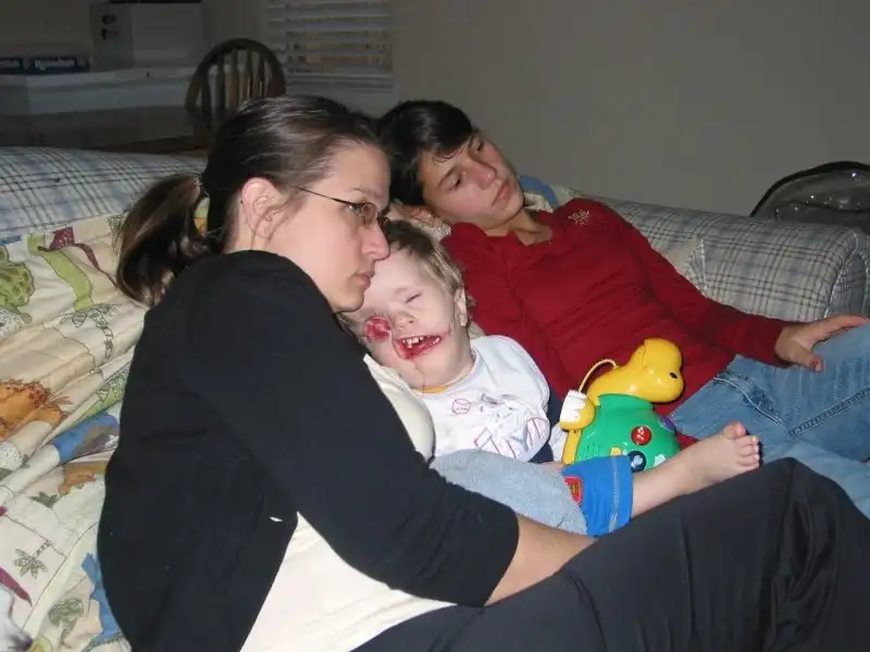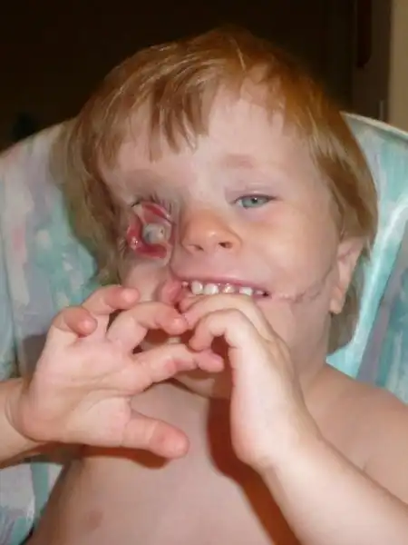 На фото мальчик по имени Деннис. Он страдает из-за синдрома амниотических перетяжек. Амниотические перетяжки (амниотические сращения, тяжи Симонара) — волокнистые нити, возникающие в плодном пузыре. Проходя через его полость, они могут опутывать, связывать или прорезать части тела плода или пуповину, вызывая различные пороки развития.