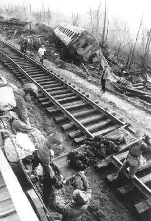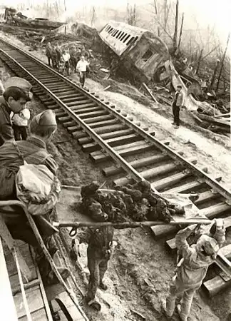 После того, как раненных увезли обгоревшие и искореженные куски тел – руки, ноги, плечи собирали по всему лесу, снимали с деревьев и складывали на носилки. К вечеру, когда подошли рефрижераторы, таких носилок, заполненных человеческими останками, набралось около 20. Но и вечером солдаты гражданской обороны продолжали резаками извлекать из вагонов вплавленные в железо остатки плоти. В отдельную кучу складывали вещи, найденные в округе – детские игрушки и книжки, сумки и чемоданы, кофточки и брюки, почему-то целые и невредимые, даже не опаленные.