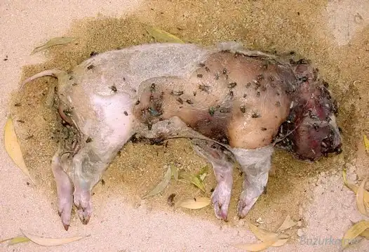 Разложение трупа это непрерывный процесс, который может занять от нескольких недель до нескольких лет, в зависимости от окружающей среды. На этом сайте мы разделили процесс на этапы, которые характеризуются определенными физическими свойствами трупа. Чтобы проиллюстрировать процесс разложения, мы используем поросенка в качестве модели. Ибо, распределение жира у свиньи очень схоже с человеческим. И привлекает насекомых не меньше. Эти факторы делают свинью лучшим примером того, как проходит процесс распада человеческого тела. Это новорожденные поросята (весом около 1,5 кг), которых случайно раздавили их матери - ключевая причина гибели поросят. Их тела были пожертвованы науке Пожалуйста, обратите внимание - эта галерея содержит мерзкие графические изображения и описания.. Итак, все этапы разложения трупа.