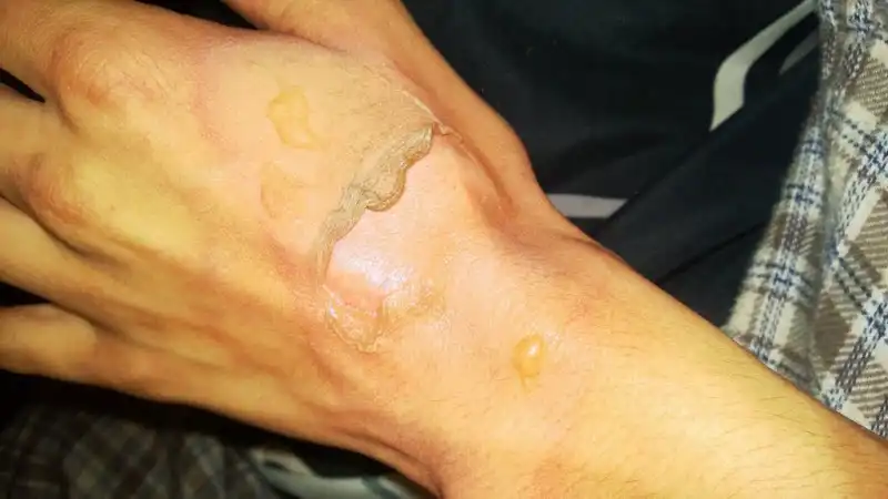 Постепенно проявился след. Ощущение было такое, что рука горит. Потихоньку начали проявляться первые волдыри