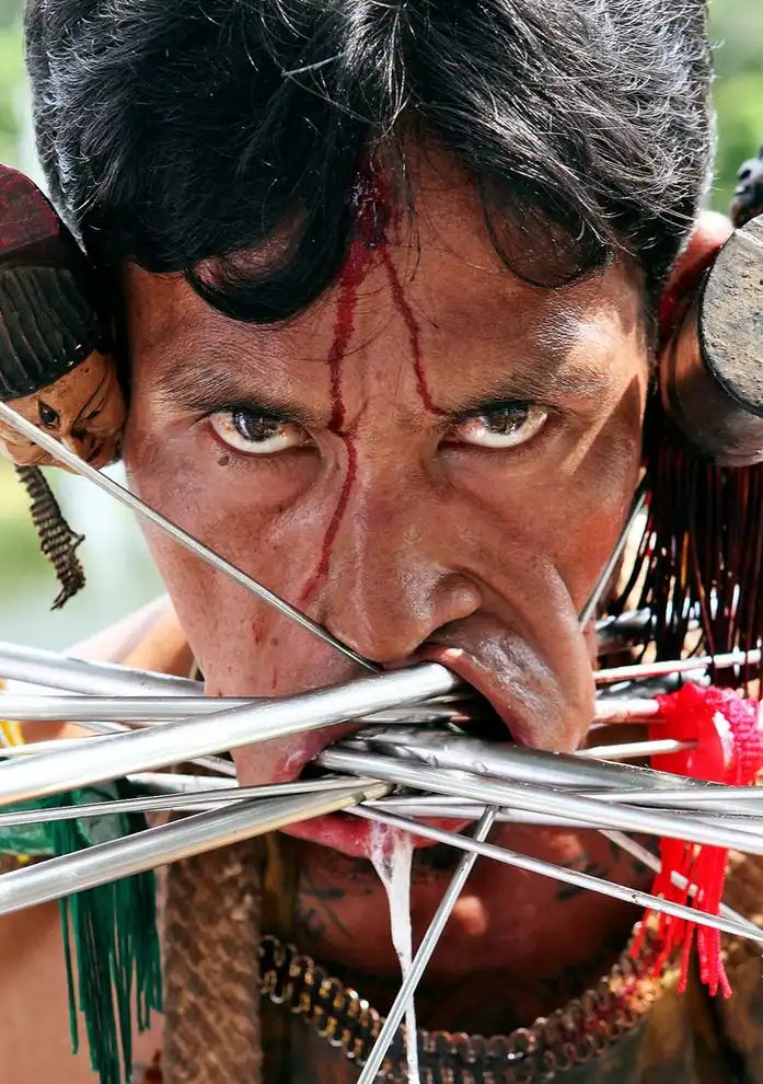 Во время фестиваля многочисленные жители острова украшают свои тела экстремальным пирсингом.