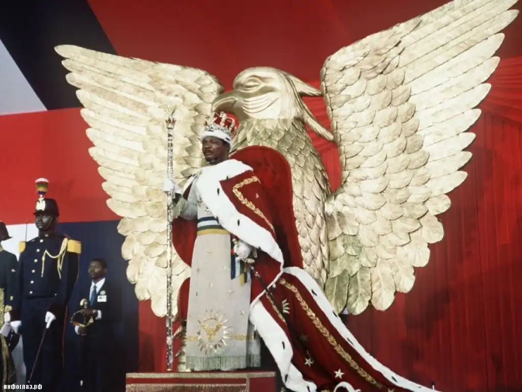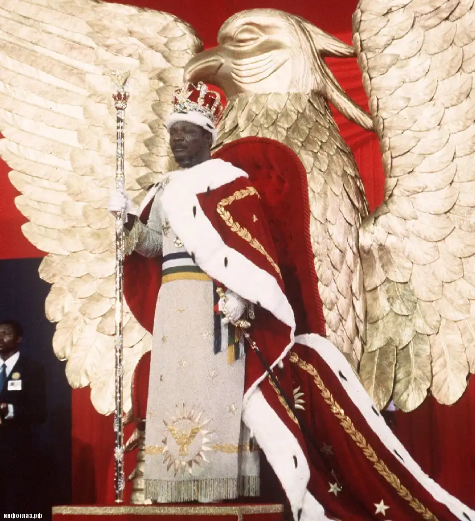 В 1977 г. Жан-Бедель короновался как император, потратив на коронацию 20 миллионов долларов: были куплены трон из чистого золота в виде орла и корона с громадными бриллиантами, а также 65 000 бутылок элитного шампанского.