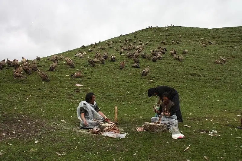 Небесное погребение – один из трёх видов погребений, применяемых в Тибете. Два других – это кремация и сбрасывание в реку.