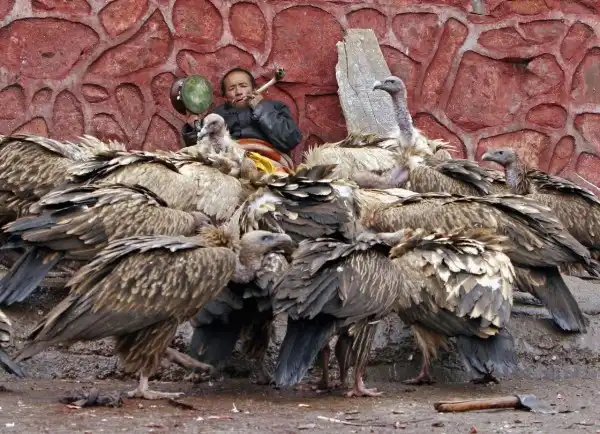 По данным министерства охраны природы Китая, в последнее время участились необъяснимые случаи смерти грифов. Чиновники связывают это с отравлением несвежим человеческим мясом.