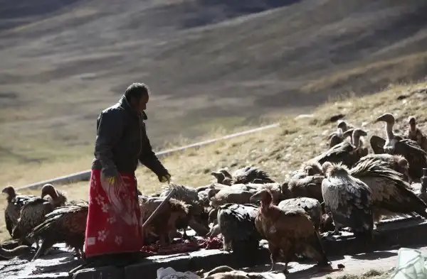 Китайское правительство объявило о намерении взять под жесткий контроль тибетские похороны. Древняя традиция, согласно которой тела умерших оставляют под открытым небом на съедение грифам, по мнению экологов, очень вредит здоровью птиц.