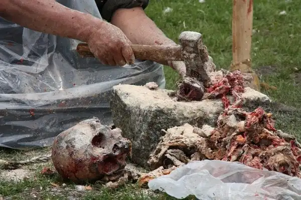 Рогьяпа дробит кости умершего во время церемонии погребения