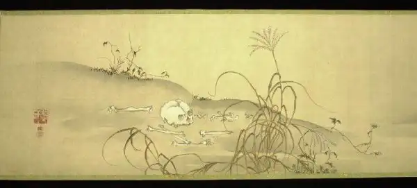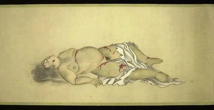 Во время странствий Еитаки знакомится с талантливым художником Цукиока Ёситоси (1839-1892), у которого многое перенимает. Признанный мастер японской гравюры укиё-э и горячий патриот своей страны, прославившийся серией гравюр и офортов о жизни самураев и знаменитых полководцев прошлого (Тоётоми Хидэёси, Нобунага Ода, Такэда Сингэн, Уэсуги Кэнсин и пр.), Цукиока Ёситоси известен и другими гравюрами, производившими в свое время немалое впечатление даже на пресыщенную развратом парижскую, лондонскую, нью-йоркскую и пр. богему: