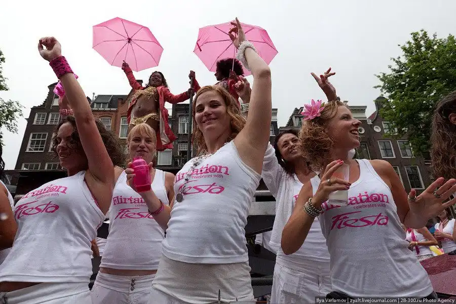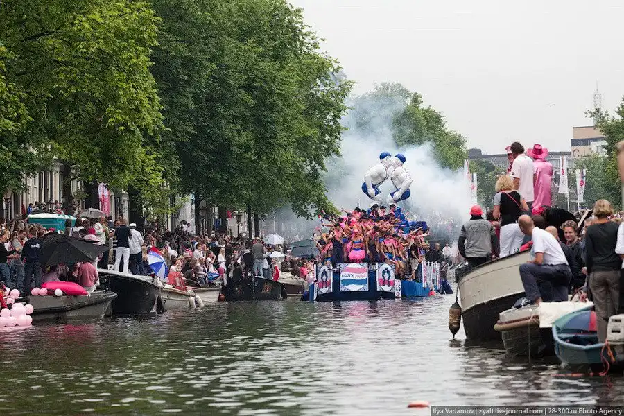 Гей-парада в Амстердаме, который называется там Розовой субботой (Roze zaterdag) - это колоритное и веселое шоу, участники которого в экстравагантных нарядах, на красочно оформленных баржах заполняют узкие каналы города и под громкую танцевальную музыку веселят и развлекают многочисленных туристов, коих съезжается в огромном количестве. За 4 часа по каналам проходят более 80-ти лодок с участниками, открывает парад мэр города.
