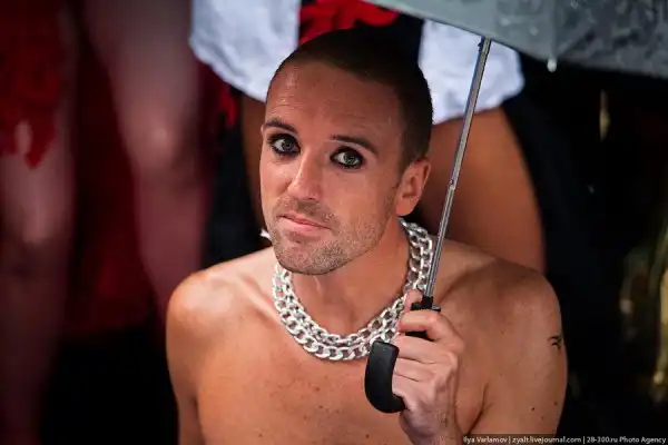 А теперь представьте: Москва, На Москва-реке, в районе Крылатского, собираются сотни платформ с геями, лесбиянками и трансвеститами. Открывает парад Собянин, у него в руках плакатик "Я гламурный мэр", а корабль украшает огромный надувной член. За платформой мэра выстроились в очередь платформы московской милиции, сотрудников РЖД, партийные платформы ЕдРа, Наших, МГЕРа и др. Весь город гуляет. Отличный бы получился праздник, зря Собянин его не разрешает.