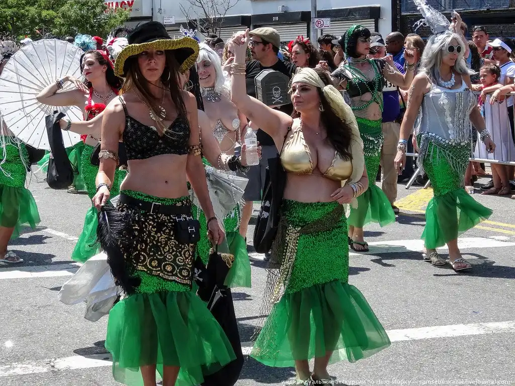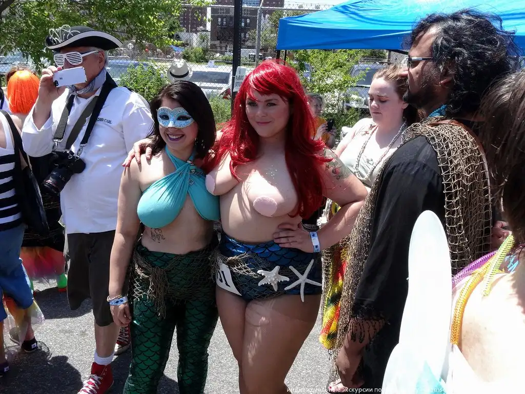 От теории перейдем к практике. Так, как в штате Нью-Йорк официально разрешено ходить топлесс, то это дает определенную свободу в создании костюмов русалки. И многие эту возможность не упускают. разница лишь в уровне креатива. Я заметил, что чем больше грудь, тем меньше креатива.