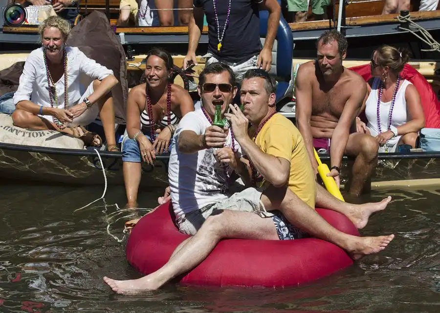 Каждая лодка — это уникальный плод фантазии участников. Украшают и корабль, и себя. Флаги, воздушные шары, экстравагантные костюмы, громкая музыка, таблички со всевозможными слоганами в поддержку однополой любви — все это неотъемлемые атрибуты гей-парада. Некоторые лодки заслуживают отдельного внимания, к примеру, специальная еврейская лодка с надписями на иврите и участниками в розовых кипах, стартующая из Бейт Ха’Хидюс. Или же корабль с африканскими геями, стремящийся обратить внимание на дискриминацию гомосексуалистов в африканских странах (кое-где там за однополую любовь можно лишиться жизни). Интересно, что в параде принимают участие и лодки полицейских и военных, а также различных крупных корпораций, например, ING. Парад открывает ни много, ни мало сам мэр города.