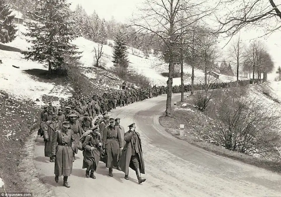 Около тысячи немецких солдат спускаются с гор в стратегически важный австрийский город, чтобы сдаться в плен силам Антигитлеровской коалиции.